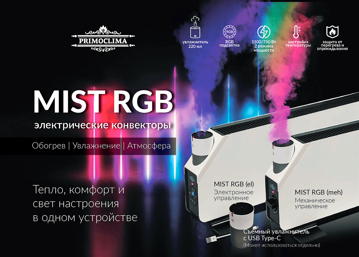 Электрические конвекторы PRIMOCLIMA MIST RGB — идеальное