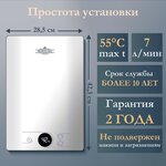 PRIMOCLIMA AMOR, белый мощностью 8.8 кВт подает горячую воду всего за 2 секунды, с высокой тепловой эффективностью, более 99%. Инновационная технология неметаллического энергосберегающего нагрева гарантирует максимальную безопасность благодаря полному разделению воды от электрической части. Устройство ELCB обнаруживает неполадки системы и предохраняет от удара электрическим током. Водонагреватель устойчив к давлению до 12 бар. Плоский водонагреватель оснащен удобной сенсорной панелью с улучшенным интерфейсом. Система предотвращения известкового налета упрощает обслуживание. Идеально совместим с