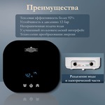Компактный водонагреватель PRIMOCLIMA THERMA, черный 5.5 кВт — горячая вода уже через 5 секунд. Электрический водонагреватель оснащен прочным корпусом со стеклянной панелью и сенсорными датчиками управления. Сухой ТЭН водонагревателя обеспечивает герметичность электрической части от воды и предотвращает появление известкового налета. Устройство устойчиво к давлению до 6 бар, работает практически бесшумно и обеспечивает неограниченную подачу горячей воды до 55°С. Сохранение пользовательских настроек и определение расхода воды позволят экономить деньги на электроэнергии. Простая и быстрая установка в небольшом помещении: кухня, душевая или ванная комната. Гарантия 2 года.